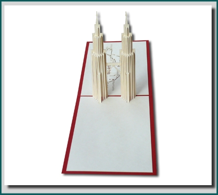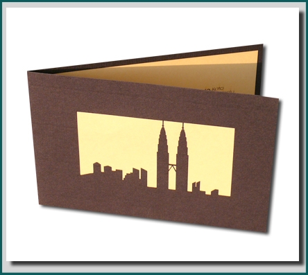 Art.-Nr.: BD012 Serie: "Greeting from Heart" Motiv: Petronas Twin Towers Erhältliche Farben: blau, bordeaux, rot, grün Mind. Abnahme: 10 Stück/Farbe Abmessung: 10cmx15cm Jede Karte mit Couvert verpackt in einer Schutzhülle aus Folie.